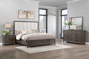 The Landon Wood Platform Bedroom Set is a perfect blend of durability, style, and functionality, ideal for creating a modern and organized bedroom. Crafted from solid Pine, high-quality engineered woods, and genuine Mindi wood veneers, this set is built to last while preserving the natural allure of wood with its multi-step finish and subtle undertones. The plush, channeled-back headboard, upholstered in natural fabric, adds a cozy and elegant contrast to the warm tones of the set. With ample storage options, the dresser, chest, and two nightstands offer spacious and meticulously crafted dovetailed drawers that glide smoothly on full-extension tracks. The footboard also features two additional drawers, perfect for storing linens, clothing, or other essentials. The platform bed's design, supported by 13 sturdy slats, provides reliable mattress support without the need for a box spring, ensuring a sleek, low-profile look. Thoughtful details like velvet-lined top drawers and modern flat bar pulls enhance the furniture's design, making the Landon Bedroom Set both a stylish and practical choice for your home.