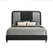 The Skyline Bedroom Set blends modern style with durability. Crafted from solid Rubberwood, engineered woods, and Ash veneers, it features a finish with gray glazing that enhances the wood grain. The upholstered panel bed adds plush comfort, while textured gray ribbed fabric contrasts with the dark wood. Spacious drawers with dovetail joinery and ball-bearing glides ensure smooth storage. A built-in USB port in the nightstand and a sleek mirror complete the set.