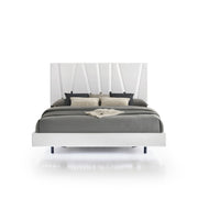 The Europa Panel Bed offers a perfect blend of modern elegance and quality craftsmanship. This set includes a panel headboard, footboard, two side rails, and four mattress support slats. Its sleek design is achieved with a majestic headboard, glossy finish, and modern mylar accents, creating a sophisticated look. The eco-friendly manufactured woods are assembled with durability in mind, finished with a glossy topcoat and padded upholstery for added comfort. Upscale extras include soft blue base lighting that reflects off the silver mylar bases, casting an ambient glow. This bed is the ideal choice for those seeking a luxurious and contemporary centerpiece for their bedroom.