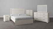 Painted finish with subtle replicated woodgrain with authentic touch. Large dark pewter color handles with an aged appearance accent cases. Drawer interiors lined with a replicated linen design for a clean, finished look. Side roller glides for smooth operating drawers. Mouldings across headboard give a thick planked look. Queen (71) and king (72) headboards can attach to a bolt-on metal bed frame B100-31 or B100-66 respectively. Safety is a top priority, clothing storage units are designed to meet the most current standard for stability, ASTM F 2057 (ASTM International). Drawers extend out to accommodate maximum access to drawer interior while maintaining safety.