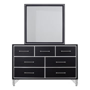 The Ava Mirror in Ebony showcases modern elegance with refined craftsmanship. Made from engineered wood with eco-friendly black laminate, it features shimmering silver mylar accents for a glamorous contrast. The low-distortion mirror provides a clear, flawless reflection, while the deep ebony frame adds sleek sophistication. A perfect blend of function and style, the Ava Mirror brings a luxurious touch to any room.