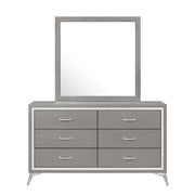 The Huxley 6-Drawer Dresser offers a perfect blend of contemporary glam and durable craftsmanship for your bedroom. This dresser is meticulously crafted from manufactured woods and eco-friendly decorative laminate, ensuring it will last for years. The design features clean lines with metallic accents and flared silver legs for a modern touch. Its finish provides a sleek, sophisticated look that is both timeless and modern, with bold highlighting the metallic accents and smooth surfaces to create a chic, polished aesthetic. The drawers, constructed with English dovetail joinery, roll smoothly on center glides for long-lasting operation. Functional and fashionable, this dresser provides ample storage for clothing, with chic, crystal-studded drawer pulls for easy access.