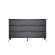 The Kailani 6 Drawer Dresser combines modern minimalist design with durable, eco-friendly construction, making it a stylish and sustainable choice for any bedroom. Crafted from solid rubberwood, engineered wood, and eco-friendly decorative laminate, this dresser is built to last with resistance to scratches, moisture, and stains, ensuring long-term beauty with minimal upkeep. The dresser features clean lines, a sleek silhouette, and a chic ribbed texture, complemented by slim metallic handles and tapered legs that enhance its contemporary appeal. Wrapped in luxurious 100% Polyester Velvet, the textured drawers are accented by chrome pulls and glide effortlessly on full-extension slides, with dovetail joinery providing lasting strength and smooth operation. This dresser not only adds a touch of sophisticated glamour to your space but also offers practical, snag-free storage, making it a perfect blend of form and function.