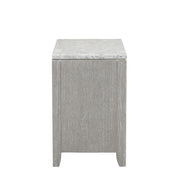 The Fiona Nightstand combines durability with timeless design. Crafted from Acacia Solids, Manufactured Woods, and Oak Veneer, it seamlessly blends the beauty of real wood with robust construction. The multi-step finishing process, including wire brushing and white glazing, results in a light, mist gray finish that enhances the natural wood grain. Sophisticated Details such as picture frame moldings, tapered legs, and sleek drawer pulls showcase its classic aesthetic. The genuine marble top, in elegant white and gray, adds a rich accent and perfectly complements the wood finish. Whether your decor leans traditional or contemporary, the Fiona Nightstand’s transitional style effortlessly fits in. Practicality meets craftsmanship with time-tested drawer construction. French front and English back dovetail joinery ensures strength, while full-extension glides allow smooth operation. Thoughtful extras include sanded and sealed drawers to prevent clothing snags, and a felt-lined top drawer to protect delicate items. The Fiona Nightstand is a versatile addition to any bedroom, combining style and functionality.