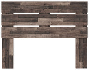 Streamlined design and a stunning two-tone finish come together in one simply extraordinary headboard. This queen panel headboard is sure to impress with platform styling and a rich brown finish over replicated pine grain texture. Its mid-century profile is a nod to the past, while the updated finish keeps it solidly in the present.