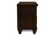 The Sevilla 2-Drawer Nightstand in walnut is a perfect blend of timeless craftsmanship and functional elegance, making it an ideal addition to any bedroom. Crafted from solid Acacia wood and enhanced with Acacia veneers, this nightstand features a rich, hand-distressed walnut finish that exudes a vintage charm. Its design artfully combines traditional elegance, rustic charm, and colonial craftsmanship, creating a warm and inviting ambiance while commanding attention with its sturdy construction. The spacious drawers, crafted with masterful dovetail joinery and lined with luxurious velvet in the top drawer, offer smooth, snag-free storage, gliding effortlessly on precision-engineered, full-extension drawer glides. A discreet USB charging connection on the back adds a modern convenience, ensuring your devices are always powered and within easy reach. Perfectly balancing style and durability, this nightstand serves as a captivating focal point in any classic, cozy, or historically inspired space.