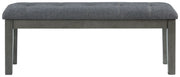 Cool and on-trend. This dining bench sports a two-tone gray look for a contemporary-yet-casual feel. The cushioned foam seat in a gray textural fabric pairs seamlessly with the antiqued gray finish, providing you with a super-stylish and versatile seating option.