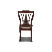 The Bixby Wood Splat Back Dining Chairs, available as a set of two, combine timeless style with lasting durability, making them a perfect addition to both formal and casual dining spaces. Expertly crafted from solid Rubberwood, these chairs are built to endure while showcasing the natural beauty of wood. The rich espresso cherry finish, meticulously hand-applied in a multi-step process, highlights the wood’s grain patterns and adds a subtle, sophisticated sheen. The chairs feature a refined splat back design, with a gracefully curved top rail and artfully fanned vertical slats, enhancing their elegant appeal. For comfort, the high-density foam cushions are covered in easy-care 100% polyester upholstery, ensuring both durability and practicality. Brass nailhead trim adds a touch of classic craftsmanship, making these chairs a stylish and functional choice for any dining setting.