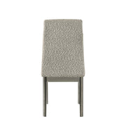 The Lennox Upholstered Side Chair, sold as a set of two, brings together exceptional craftsmanship, sophisticated design, and unmatched comfort to elevate your dining experience. Expertly crafted from premium solid Rubberwood and genuine Ash wood veneers, these chairs ensure long-lasting durability while maintaining a refined and elegant look. The sleek design features rounded legs and seat frames with a metallic silver finish that perfectly complements the soft neutral tones of the pale gray fabric. Upholstered in luxurious boucle fabric, these chairs offer a plush, textured elegance that provides both high-end comfort and a warm, inviting charm. Ideal for both everyday dining and special occasions, the Lennox Side Chairs are a perfect blend of style and practicality.