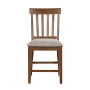 The Putnam Counter Chair in Walnut offers both quality and style, making it a perfect addition to any counter-height dining area. Each carton includes two counter chairs, crafted from solid rubberwood and reinforced with base stretchers for enhanced stability and durability. The warm walnut finish is achieved through a detailed multi-step process, bringing out the natural beauty and grain patterns of the wood. Embracing mid-century modern design, these chairs feature clean lines and a simple rectangular shape. The distinctive legs and slat backs add a geometric flair, blending modern and mid-century aesthetics seamlessly. Designed with ergonomic contours for exceptional back support, the chairs also feature resilient foam cushions wrapped in premium 100% polyester fabric for a well-padded, supremely comfortable seating experience. Choose the Putnam Counter Chair for a combination of timeless design and luxurious comfort.