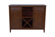 The Bixby Dining Server/Buffet Chest in Espresso is a versatile and stylish addition to any dining or entertaining space. Expertly crafted from solid Rubberwood, manufactured woods, and real wood veneers, this server is built to last while preserving the timeless beauty of natural wood. The rich espresso cherry finish, meticulously applied in a multi-step process, accentuates the wood's natural grain and adds a subtle, sophisticated sheen. This sideboard is designed with both functionality and aesthetic appeal in mind, offering ample storage space with a built-in stemware holder and wine cubby, making it easy to keep your dining essentials organized and accessible. Whether used for everyday storage or as an elegant centerpiece during gatherings, this buffet chest combines practicality with a refined look that enhances any space.