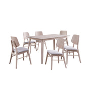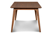 The Oscar Mid-Century Modern Wood Dining Set embodies the essence of mid-century modern design, characterized by clean lines, organic curves, and a focus on functionality. The sleek, minimalist design of the 60-inch dining table and accompanying chairs reflects the timeless appeal of this iconic style, making it a versatile addition to any dining space. The Walnut brown finish and natural grain patterns add warmth and sophistication, while the subtle curves and tapered legs provide a touch of elegance. This set not only enhances your dining area aesthetically but also offers practical features such as reinforcing base stretchers for the chairs and a sturdy table that seats up to six people comfortably. With its blend of quality craftsmanship and classic design, the Oscar Dining Collection is a standout choice for those who appreciate both style and substance in their home furnishings.