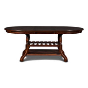 - Sophisticated Design: The table features a classic oval shape complemented by a sturdy turned pedestal base, which exudes traditional charm. The design is enhanced by an integrated lower shelf with wine storage racks, seamlessly combining elegance with practical functionality, making it a perfect centerpiece for both formal dining rooms and cozy kitchen spaces.