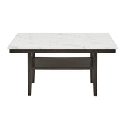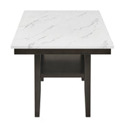 The Carissa 60" Rectangle Dining Table with Storage Shelf blends modern style and smart functionality. Crafted with durable Rubberwood legs and engineered wood, it features a glossy faux marble top that’s heat- and water-resistant for everyday durability. A lower shelf offers extra storage, while the sleek white and gray veining paired with deep espresso legs creates a chic, contemporary look for your dining space.