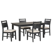 The Sable Crest 5 Piece Dining Set brings lasting quality and sophisticated design to your dining space. Crafted from solid Rubberwood, premium engineered woods, and finished with real Oak wood veneers, this set balances robust construction with a refined, timeless look. The multi-step sable black finish reveals the natural grain of the wood with a rich, ebony undertone, adding depth and character to your decor. This versatile set combines clean lines with farmhouse-inspired touches, fitting beautifully in both contemporary and traditional settings. Ideal for small spaces, the 60" table seats up to six comfortably, making it perfect for intimate gatherings or family dinners. The curved backrests and plush, upholstered seats on each chair provide stylish support and comfort, while their solid wood frames offer durability you can count on for years to come.