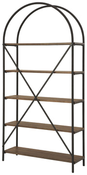 Put a personal touch into your space with the Galtbury on-trend bookcase, perfect for showing off framed photos, books and favorite objects. Defined by its distinctive mix of materials, this piece pairs an open metal frame in a bronze-tone finish with 5 fixed distressed wooden shelves for a look that’s right at home in an industrial, modern farmhouse or rustic setting.