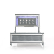 The Valentino Bed with Touch Lighting is designed to transform your bedroom into a glamorous sanctuary. This opulent set is meticulously crafted from a blend of manufactured and solid woods, ensuring lasting quality and a distinctive appearance. The bed showcases a dazzling crystal button-tufted padded headboard, mirrored trim, and exquisite alligator embossed inlays, all of which evoke an unparalleled Hollywood glam vibe. The sophisticated touch-controlled LED lighting offers soft, ambient illumination, creating an intimate and luxurious atmosphere. This magnificent bed set brings a touch of star quality to your contemporary bedroom suite, seamlessly combining extravagant style with exceptional craftsmanship.