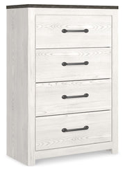 Cool, clean and casually modern. This chest’s wispy whitewash and gray finish sets the tone for your calming sanctuary. Large linear pulls add dimension and authenticity. Four smooth-gliding drawers neatly accommodate your wardrobe needs.
