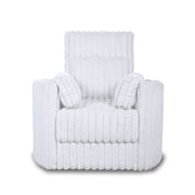 The Embrace Swivel Living Room Accent Chair in white combines comfort and style with practical functionality. Upholstered in 100% white polyester fabric with a soft, blanket-like texture, this chair is designed for ultimate relaxation. It includes one swivel chair and two side accent pillows that complement its luxurious ribbed channel fabric. The high-density, resilient foam cushions provide supportive and comfortable seating, enhancing the overall lounging experience. Built with a strong and durable frame made from a combination of solid and manufactured woods, this chair ensures long-lasting quality. The smooth swivel action allows for easy movement and engagement in conversations. The versatile, transitional styling of the Embrace collection, paired with the abundance of snuggly pillows, invites you to lounge and unwind in unparalleled comfort.