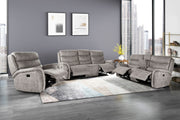 Indulge in the luxurious comfort of the Kamari Reclining Sofa Set. Crafted with a sumptuously soft dappled gray upholstery, this set invites you to sink into relaxation. Tailored to perfection, its triple roll backs, bucket seats, and wrap-around arms exude sophisticated style, accentuated by tasteful contrasting welt detailing. Recline and unwind with fully upholstered chaise recliner footrests, offering unparalleled comfort. Built for lasting support, hardwood and manufactured wood frames, coil spring cushions, and resilient foam ensure durability and coziness for years to come. Convenience meets style with the loveseat''s center console for remote storage and built-in cupholders for your beverages. Versatile in design, whether your taste leans contemporary or traditional, this set effortlessly complements any decor.