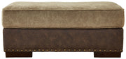 Punctuated by a subtle band of nailhead trim, the cool, contemporary style of this ottoman is perfect for those who love the look of leather. Two textural tones provide twice the style and comfort—and incorporate an added layer of visual interest.