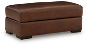 Effortlessly stylish, indulgently comfortable. This ottoman encourages everyday relaxation with an invitingly plush, spacious cushion. It embodies affordable luxury, pairing the sleek appeal of top grain leather with expertly matched faux leather. Suiting spaces from casual to contemporary, the ottoman's universal appeal makes staging your space nearly effortless.