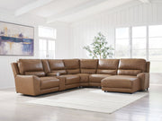 DeepWakes - 6-Piece Power Reclining Sectional With RAF Press Back Power Chaise And Storage Console - Caramel