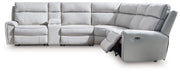 Social Pointe - 5-Piece Power Reclining Sectional - Pearl / Ash