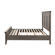 Transform your bedroom into a haven of sophistication with the Lisbon Bed. Crafted from Acacia solid wood and eco-friendly embossed oak laminate, this bed boasts enduring strength and durability. Its multi-step gray finish enhances the natural beauty of the wood, infusing your space with an elegant ambiance. The stately headboard is paired with a functional storage footboard, providing a convenient solution for linens. Evoking a traditional charm with bracket feet and picture frame moldings, this bed receives a modern twist with brushed pewter hardware and a contemporary gray finish.