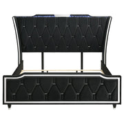 Lorient - Queen LED Upholstered Wingback Bed - Black