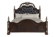 The Royal Classics Maximus Upholstered Bed in Madeira Brown is a masterpiece of heirloom quality, meticulously crafted from solid poplar and premium birch veneers for long-lasting beauty and durability. Its rich, multi-step finish highlights the natural wood grain, while delicately burnished gold tipping accents the intricate carvings, capturing the essence of 18th-century Rococo style. The plush, button-tufted headboard, wrapped in rich vegan leather, offers a luxurious and regal focal point for your master bedroom. This set includes a headboard, footboard, side rails, and a slat kit, making it a complete package for timeless elegance and sophisticated comfort.