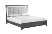 levate your bedroom with the timeless elegance of the Odessa Bed. Crafted from Pine solid wood and Mindy veneers, this bed exudes strength and durability, promising long-lasting comfort. The rich finish, meticulously applied through a multi-step process, accentuates the natural beauty of the wood, imparting a sophisticated charm to your space. Experience luxurious relaxation with the stately headboard featuring a plush fabric insert crafted from 100% polyester, offering both style and comfort. LED accent lighting around the panel adds a serene ambiance, perfect for unwinding after a long day. With its transitional design, characterized by clean lines and brushed finish hardware, the Odessa Bed effortlessly complements any decor style, making it a versatile addition to your bedroom sanctuary.