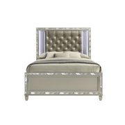 Discover the Radiance Bed, meticulously crafted for enduring stability and durability from a combination of Solid Rubberwood and manufactured woods. Its semi-gloss lacquer finish adds a silky, modern touch to this captivating collection. Glossy textured inlays, mylar trim, and a crushed crystal decorative laminate frame the plushly upholstered, crystal button-tufted headboard, exuding opulent appeal. Designed with functionality in mind, LED lighting accents your space, casting a sparkling glow against the glamorous padded headboard. Transform your bedroom into a haven of luxury and style with the Radiance Bed.