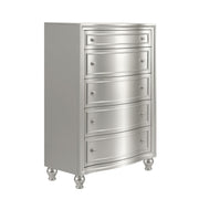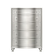 Introducing the Reflection Chest in Silver, meticulously crafted from solid Pine and high-quality manufactured wood to ensure enduring strength and durability. Its glamorous matte silver finish exudes sophistication, reflecting the mirrored panels and silver drawer pulls of the 5-drawer chest, adding an elegant touch to any bedroom decor. Experience sophisticated luxury with bowfront drawers, sumptuous lavender velvet linings, picture frame moldings, and turned bun feet, seamlessly blending classic charm with modern flair. Inside, find meticulous craftsmanship with English dovetail joinery, full extension drawer glides, finished interiors, and select velvet-lined drawers to safeguard delicate items. Enjoy extra upgrades such as the cedar-lined bottom drawer, perfect for sweater storage. This chest is not just a piece of furniture—it's a marvel of design and practicality, destined to enhance your bedroom space with style and functionality.