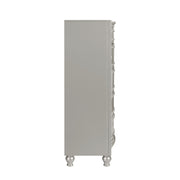 - Glamorous Matte Silver Finish: This luxurious finish not only adds a radiant touch of elegance but also beautifully complements the mirrored panels and shimmering silver drawer pulls, creating a refined and sophisticated look.