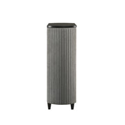 The Skyline Door Chest in Onyx blends bold design with functionality. Crafted from solid Rubberwood, engineered woods, and Ash Wood veneers, it’s built to last with a modern, sophisticated look. The Onyx Black finish with gray glazing enhances the wood grain for a luxe feel. Textured gray ribbed fabric contrasts beautifully with the dark wood. Behind the doors, spacious drawers with dovetail joinery and ball-bearing glides ensure smooth storage. A velvet-lined top drawer adds a refined touch. ?