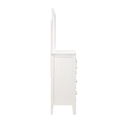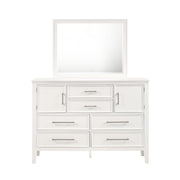 The Andover 2-Piece Wood Dresser and Mirror Set offers a blend of durability, style, and functionality, making it an ideal addition to any bedroom. This set includes a dresser and a matching mirror, both expertly crafted from solid Rubberwood, manufactured woods, and wood veneers, ensuring long-lasting durability while showcasing the natural beauty of real wood. The rich Nutmeg Brown finish is achieved through a meticulous multi-step process, featuring sand-throughs and white glazing, which imparts a sophisticated, weathered appeal, highlighting the unique grains and characteristics of the wood. The Andover collection’s clean lines and modern rustic style are complemented by sleek, elongated metallic handles that provide a sophisticated contrast to the warm, dark wood finish. The framed drawer fronts add depth and dimension, while the sturdy block-style legs ensure a solid and stable foundation. The drawers glide smoothly on robust Kenlin drawer glides and feature dovetail joinery, a testament to superior craftsmanship. The set is completed by the pristine, low-distortion beveled glass mirror, encased in picture frame-style moldings that offer a clean, elegant look, enhancing any space with timeless sophistication.