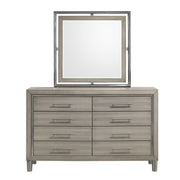 The Lennox Mirror in Gray is a stunning addition to any modern bedroom, blending elegance and functionality with ease. Crafted with premium engineered woods and an eco-friendly gray ash laminate, it features a sleek, contemporary design that is both stylish and durable. Lustrous metallic trim accents enhance the light gray finish, adding a touch of sophistication to create a refined ambiance. Encased in a sturdy wood frame, the clear, low-distortion glass offers a crystal-clear reflection, bringing brilliance and realism to your space. The Lennox Mirror is the perfect finishing touch for a contemporary and polished room.
