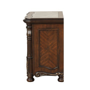 - Genuine Marble, Ornate Details: The real marble inlay on top of the nightstand adds a dramatic touch. Contrasting decorative moldings, fancy face veneers and antique gold drawer pulls complete the extravagant look.