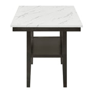 The Carissa 60" Rectangle Counter Table with Storage Shelf blends modern style and smart functionality. Crafted with durable Rubberwood legs and engineered wood, it features a glossy faux marble top that’s heat- and water-resistant for everyday durability. A lower shelf offers extra storage, while the sleek white and gray veining paired with deep espresso legs creates a chic, contemporary look for your dining space.