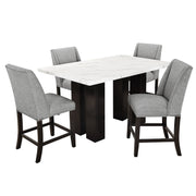 The Faust 2 Piece Adjustable Height Dining Table combines luxurious design with practical functionality, making it a standout addition to any dining area. This set includes a sophisticated white faux marble tabletop and a sturdy black pedestal base. Crafted from solid rubberwood and eco-friendly manufactured woods, the table offers stability, strength, and durability. The faux marble surface is heat, scratch, and stain resistant, providing the opulent look and feel of real marble with easy maintenance. The sleek white tabletop with subtle gray veining creates a modern, luxurious aesthetic, while the dark pedestal legs offer a bold contrast, enhancing the table''s contemporary appeal. The adjustable height feature allows you to enjoy a standard 30" dining table height or expand the legs to create a 36" counter height style, adding versatility to your dining experience. Perfect for those seeking a blend of elegance, durability, and flexibility in their home, the Faust Dining Table is a remarkable choice.