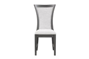 The Flair Dining Chair set combines durable craftsmanship and sleek, modern design to create an inviting and functional addition to your dining space. Expertly constructed from solid rubberwood, these chairs offer long-lasting stability and strength, ensuring years of dependable use. The distinctive gray finish is applied through a multi-step process that enhances the natural wood grain, adding a touch of sophistication to any room. Comfortable seating is provided by plush foam cushions, covered in soft, textured 100% polyester fabric that is both cozy and easy to maintain. The gently flared backrest gives the chair an airy, open feel, while the thick welting along the fabric adds a stylish, tailored touch. This set of two chairs combines practicality with modern appeal, making it a smart and stylish choice for your dining area.