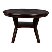 The elegant Gia 5 Piece Dining Table and Chair Set is built with durability and comfort in mind. This dining set provides spacious seating for four, and a handy storage shelf located under the table top to store dinnerware or decor. The dining table apron, table legs and dining chair legs are crafted of solid Rubberwood to add strength and stability. The distinctive reverse diamond Mindi wood veneer dining table top accents the beautiful wood grains which are highlighted by the multi-step finish, with just a touch of red for richness. The set includes four comfortable dining chairs with pu upholstered seat cushions and backrests. The final touch is Gia's signature interlocking chain design on the chair back, giving this welcoming dining set a touch of sophistication. The result is a casual, contemporary dining set, perfect for your dining room or kitchen.