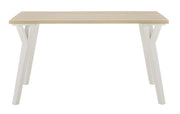 Bring light to your dining area with clean lines and a bright two-tone finish. The rectangular dining table sports stylized saber legs in a white finish for beautiful simplicity. The MEGA-TUFF® melamine top in a light tan color provides additional durability, marrying minimalism with big style for a delightful combination.