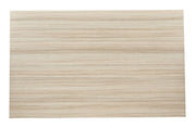 - Melamine top with replicated exotic wood grain in light tan, natural wood coloration