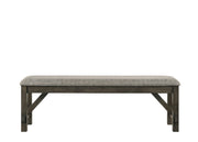 The Gulliver Upholstered Dining Bench in rustic brown offers a combination of quality construction and timeless design, making it a versatile addition to your home. This bench is crafted from durable solid rubberwood and acacia wood veneers, ensuring long-lasting stability. The multi-step rustic brown finish enhances the intricate patterns of the natural wood grains, with subtle notes of gray and charcoal brown adding a touch of elegance. The design merges clean lines with the warmth of distressed wood, featuring robust legs and sturdy base supports that embody modern farmhouse charm. The easy-care polyester and cotton blend gray fabric wraps the resilient foam seat cushion, providing a cozy seating experience. Ideal for extra dining room seating or as a stylish entryway bench, the Gulliver Upholstered Dining Bench seamlessly blends contemporary sophistication with traditional rustic elements.