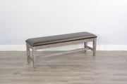 This Homestead Hills bench with cushion seat was sturdily built to last and finished in a beautiful Tobacco Leaf and Alpine Grey finish.