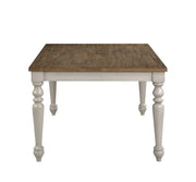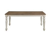- Timeless Farmhouse Elegance: The soft, distressed two-tone finish exudes a vintage farmhouse appeal, where the rich, natural wood tabletop pairs harmoniously with the cream-colored, weathered base and legs. This expertly curated blend of textures and tones creates a welcoming ambiance, perfect for elevating any traditional or cottage-inspired dining space into a cozy, inviting retreat.