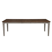 The Mariana Rectangle Dining Table is expertly crafted from solid Rubberwood, premium manufactured woods, and authentic Acacia wood veneers, ensuring both durability and timeless beauty. Its meticulous multi-step finish in a vintage crème, accented by a warm walnut top, creates a rich, time-worn appearance that adds depth and character to any dining space. The hand-distressed details, including rasping, clefting, and threading, give it a unique, artisanal charm. Blending traditional elegance with rustic and colonial craftsmanship, this table brings a warm and inviting ambiance to classic and cozy interiors. With its generous surface area and an included 18" leaf, the table extends from 78" to 96", comfortably seating up to 8 guests, making it perfect for family meals or larger gatherings. A stunning focal point for any dining room, this table combines beauty, durability, and versatility, making it a practical and stylish choice for any home.