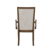 The Mariana Dining Arm Chairs, available as a set of two, combine timeless craftsmanship with enduring comfort. Constructed from solid Rubberwood, premium manufactured woods, and Acacia wood veneers, these chairs offer long-lasting strength and natural beauty. Each piece is finished in a vintage crème and hand-distressed with artisanal techniques like rasping, clefting, and indentations, giving it a rich, time-worn character that adds depth to any dining space. The high-density foam cushions on the backrest and seat, upholstered in soft, premium 100% polyester fabric, provide luxurious comfort, making these chairs ideal for extended meals and gatherings. With their sleek silhouette, tall upholstered backrest, and gracefully curved armrests, these chairs seamlessly blend elegance with superior support, enhancing both the style and function of your dining area.